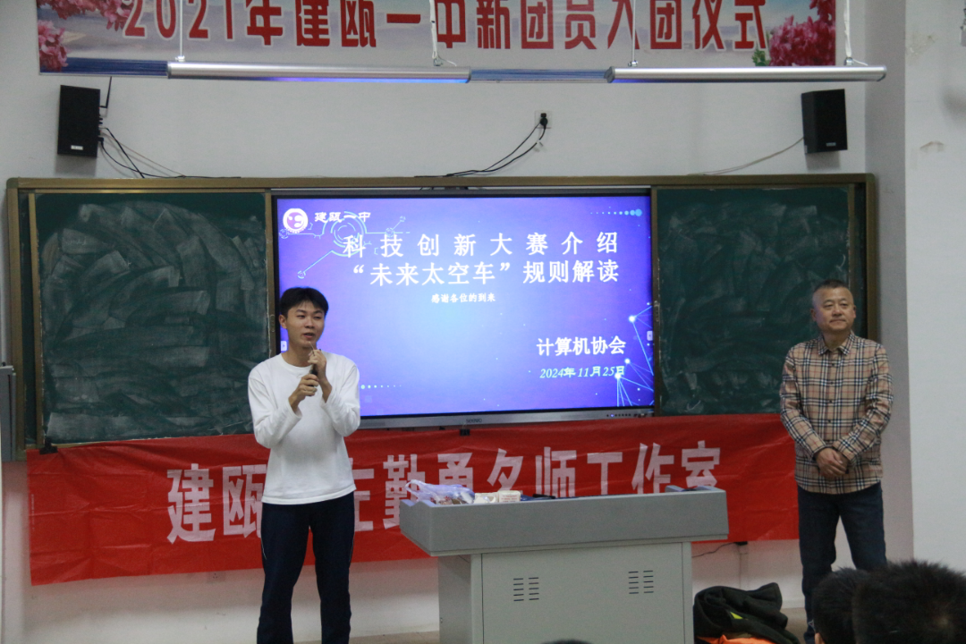 11月25日,建瓯一中计算机协会成功举办了以《科技创新大赛介绍暨“未来太空车”规则解读》科技讲座,特邀左勤勇名师工作室领衔名师左勤勇老师主讲。此次讲座不仅吸引了高一年段各班代表学生共计100人积极参与,更在校园里掀起了一股科技创新的热潮。